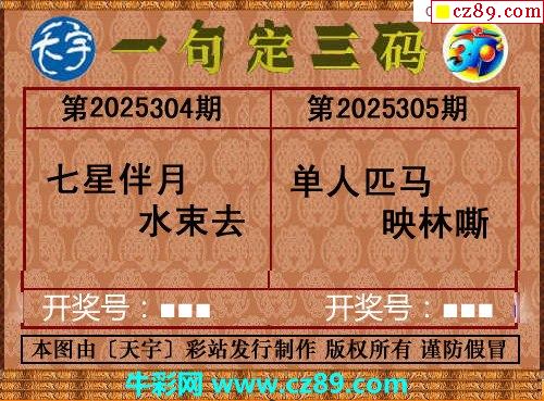 天宇多字和值谜2025305期3d图谜