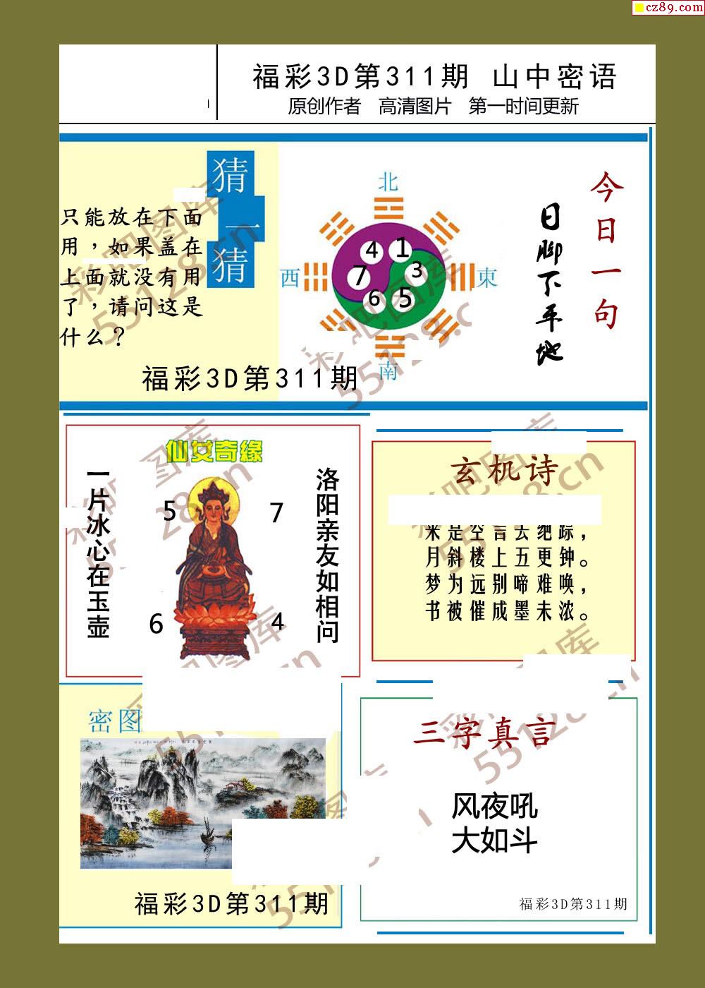福彩3d25年311期山中密语彩报