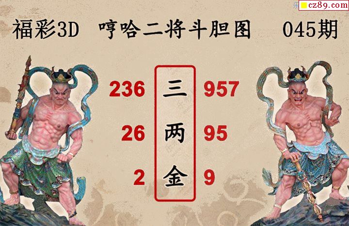 福彩3D2026045期 白鱼舟3D图谜哼哈二将斗胆图