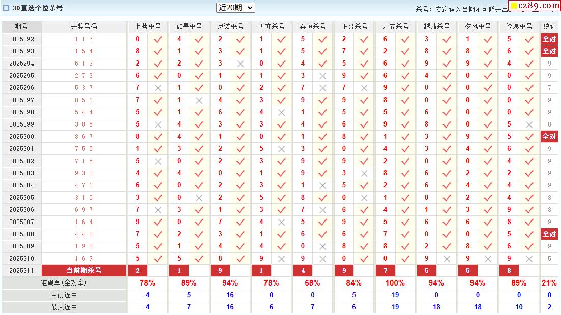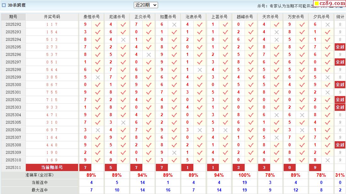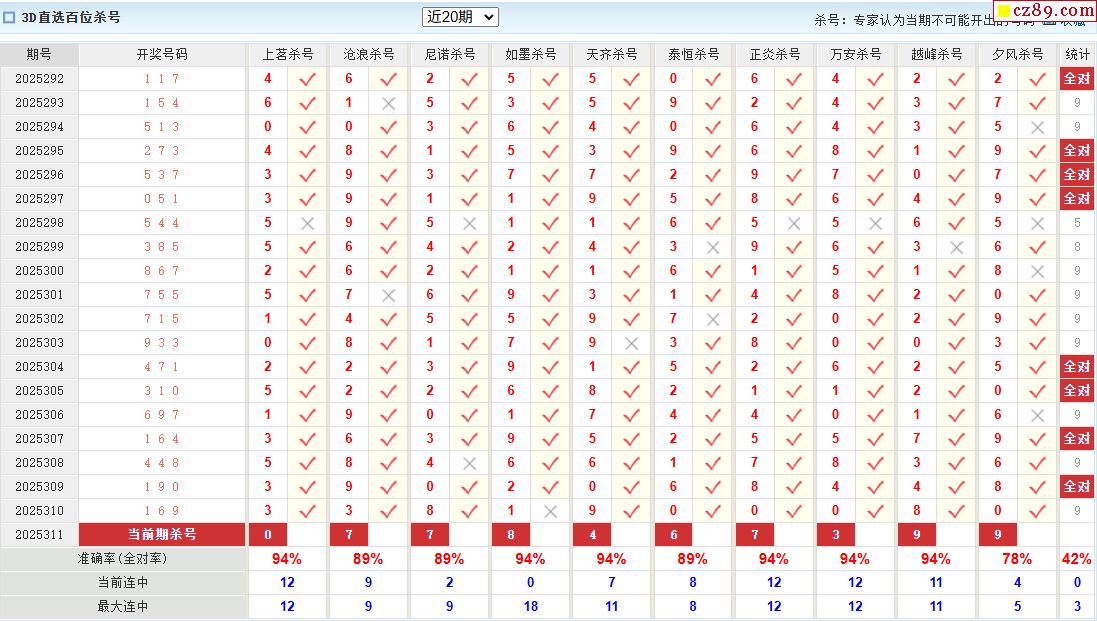 2025年福彩3D311期 百期大数据杀号定三码技巧