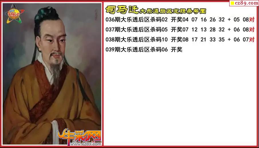 大乐透039期司马迁后区定胆杀号图