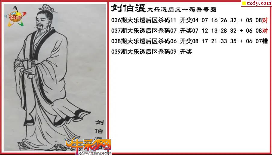 > 大乐透039期刘伯温后区一码杀号图