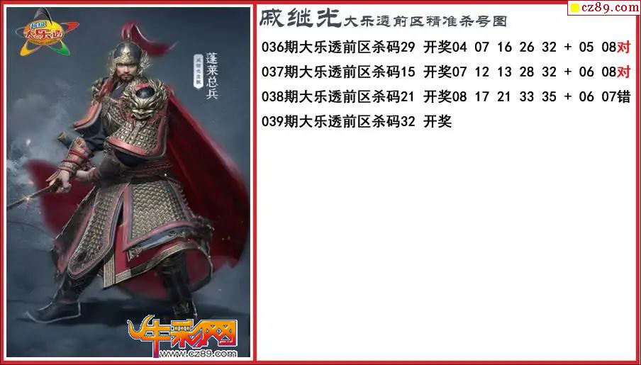 大乐透039期戚继光前区精准杀号图